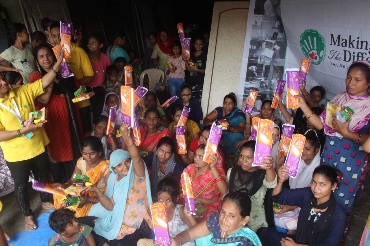 We educated and distributed 50 sanitary pads at Nala Sopara to underprivileged women.